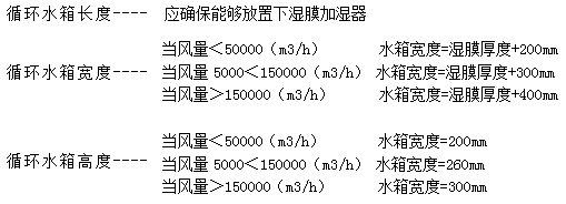 b、有效加濕截面積S=Q(m3/h)÷3600÷2.5m/s。