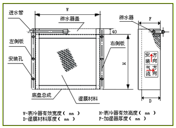 濕膜外框采用不銹鋼材質(zhì)制作而成,周?chē)邪惭b孔,便于在表冷器法蘭盤(pán)上固定。(結構見(jiàn)右圖)