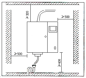 主機與蒸汽噴桿的距離越近越好,確保蒸汽量最大吸收;HJDJ—NN—Z/F整機型主機周?chē)鸁o(wú)障礙物的最小保證距離(主機前方≥700 mm;主機左、右方向≥500 mm;主機—地面≥400 mm;主機上方≥320 mm);