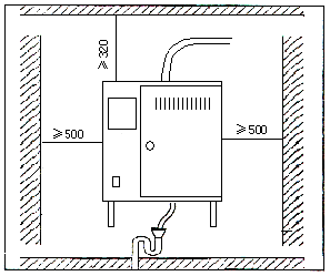主機與蒸汽噴桿的距離越近越好,確保蒸汽量最大吸收;加濕器主機周?chē)鸁o(wú)障礙物的最小保證距離(主機前方≥700 mm;主機左、右方向≥500 mm;主機—地面≥400 mm;主機上方≥320 mm);